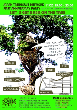 ホントは10年前くらい前から活動はしてきたんですが。一応、ここでひと区切り。今までの活動を報告しつつ、ツリーハウスの魅力を多くの人に伝える活動を本格的に開始しようと思っています。そこで11/22に1周年記念パーティーをやります。この時に来年の活動に関してもお伝えしたいと思ってます!