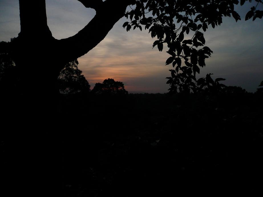 白みはじめた空に、アンコールワットがぼんやり見えてきた!
